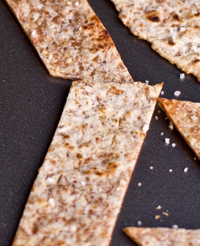 Directions: Preheat oven to 375F. Rub Earth Balance all over the tortilla with a pastry brush. Sprinkle with fleur de sel. Cut into strips and place on baking sheet. Bake for about 4-5 minutes, watching carefully so as not to burn.