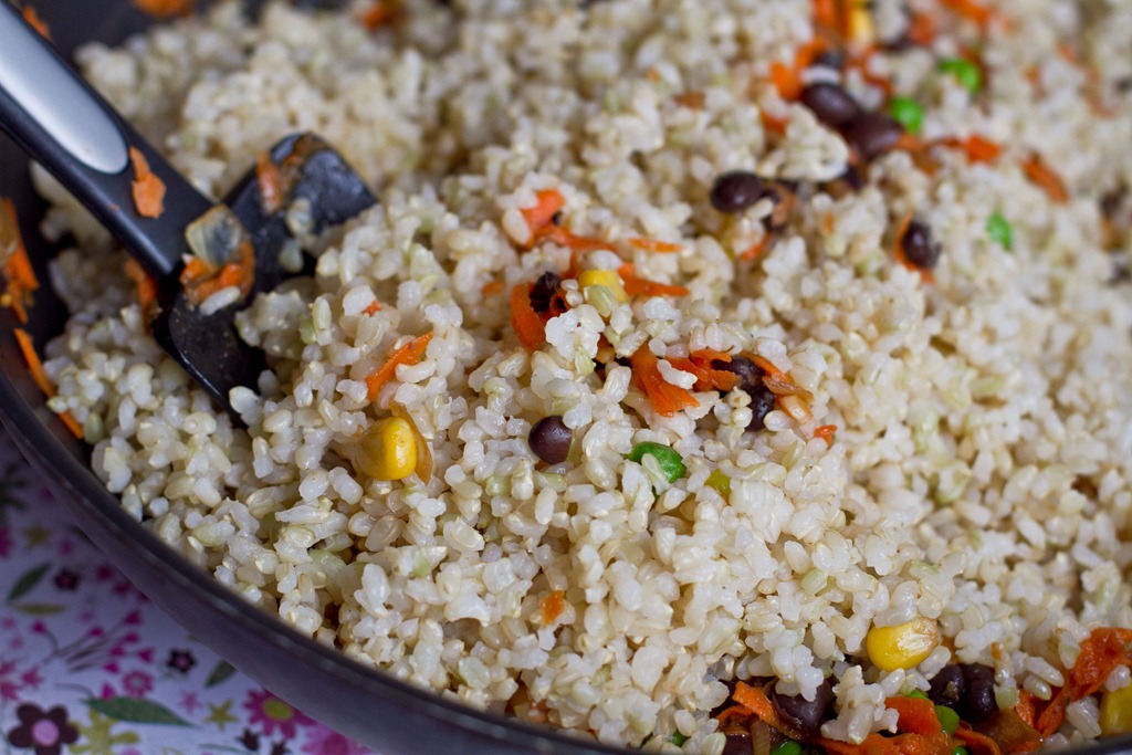 I tasted this bean mixture and it was so salty, I thought there was no way I was going to like this dish. But lo and behold, after I added the frozen veggies and rice it tasted just right. The frozen veggies also release a bit of water into the mixture to help thin out the Tamari sauce.